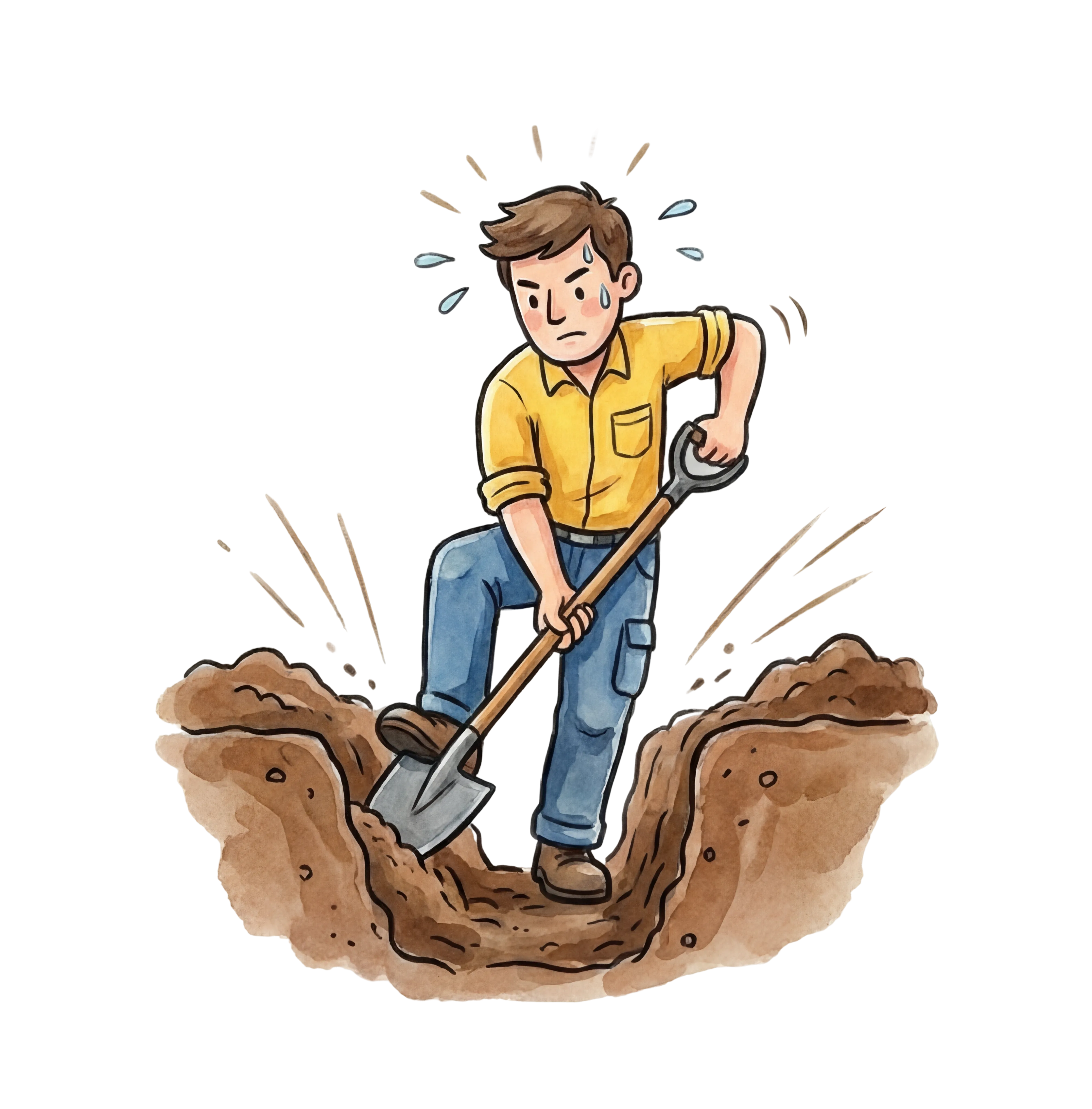 Iskopavanje i priprema terena. Da bi svjetlo stajalo čvrsto, mora imati jake temelje. Hvala ti 🙏.